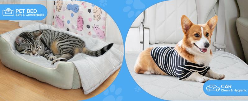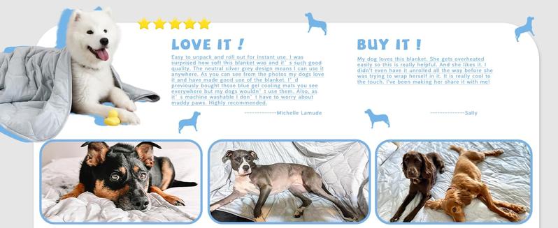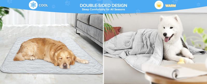🐶[Designed for versatility] Elegear Cooling Dog Blanket is designed for versatility, its double-sided design features a cooling side and a soft side for all seasons. The cool side gives your furry friend a cool summer day, and when summer is over, you don't have to worry about Elegear Dog Blanket losing its usefulness, flip it over and use the warm and cozy side to keep Rywell Dog Blanket with you all year round!