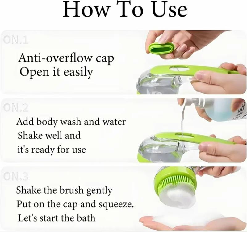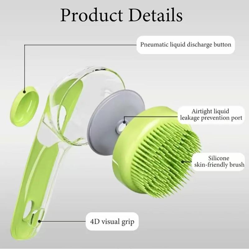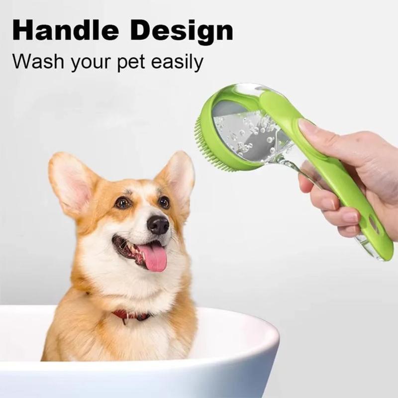 Long Handle Pet Bath Brush with Soft Silicone Head, Head Scratcher Shampoo Massager Comb for Dogs & Cats - Gentle Cleaning & Massaing Tool for Long/Short Hair Pets, Easy Grip Handle Adjustable Pet Bath Brush Set Dog Cat Hair Cleaning Bath